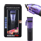 BaByliss PROماشين اصلاح Model:boost plus ماشین اصلاح سر و صورت حجم زن بابیلیس پرو بنفش حجم زن Babyliss Influencer Collection FX Boost Clipper FX870GI Green از مجموعه ی پر طرفدار و رنگارنگ اینفلوئنسر BaBylissPRO با رنگ بنفش است که دارای موتور بدون جاروبک سرعت و گشتاور بالای 6800RPM دارد و تیغه ی DLC جدید کارهای فید و سایه زنی را انجام می دهد#FX8010D). ماشین اصلاح بنفش رنگ و حجم زن بابیلیس دارای قلاب آویز، کنترل مخروطی 5Detent و محفظه ی تمام فلزی با دسته الماسی جدید است که به و سیله ی باتری لیتیوم یونی با 2 ساعت زمان اجرا کار می کند و همچنین قادر به اجرا بصورت باسیم و از طریق برق شهری نیز می باشد. 8 شانه اتصال به تیغه شامل سایزهای 1/16، 1/8، 3/16، 1/4 اینچ 3/8، 1/2، 5/8، 3/4 اینچ است که تطیف کاملی از کوتاهی موها را انجام می دهد. برش مستقیم جنس تیغه تیتانیوم میزان شارژ ۲ ساعت