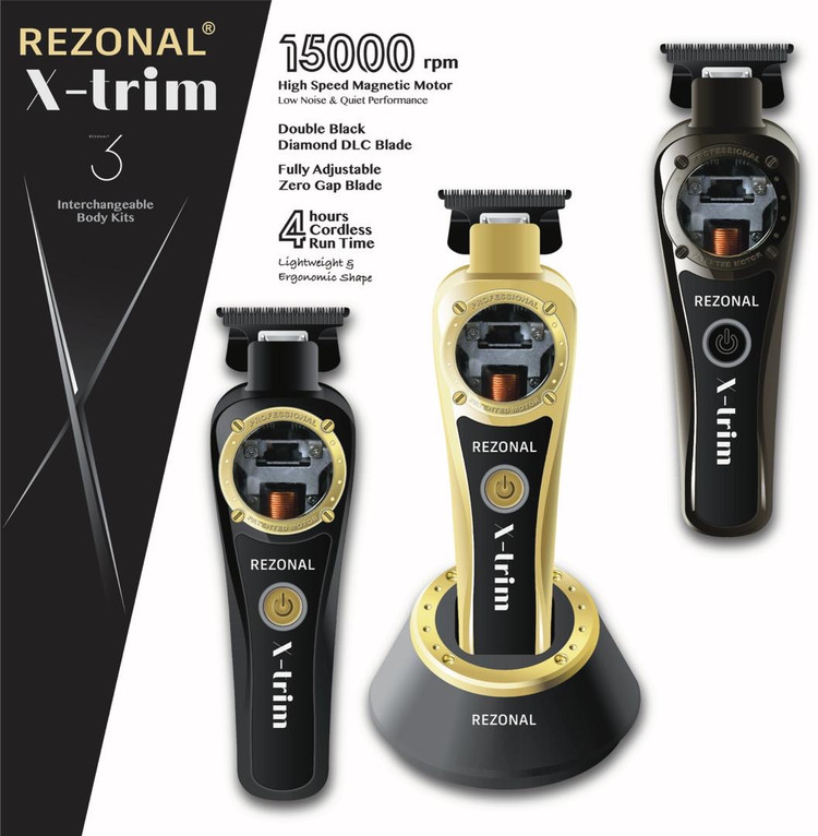 ماشین اصلاح خط زن رزونال ایکس تریم Rezonal x-trim از تیغه های استیل کربن بالا 440C ژاپنی ساخته شده است که تیغه صفرزن است و فاصله ی تیغه ی ثابت و متحرک 0 تا 1 میلی متر است.ماشین اصلاح خط زن رزونال ایکس تریم از موتور هوشمند نسل جدید وکتور است که با توجه به حجم مو میزان سرعت را تنظیم می کند و بین 9000 تا 15000 دور در دقیقه قابل تغییر است موتور گشتاور را کنترل می کند و تنظیم سرعت اتوماتیک دارد و صدا و لرزش کمی دارد